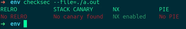 Reviewing protection imposed in our sample executable using the checksec tool.