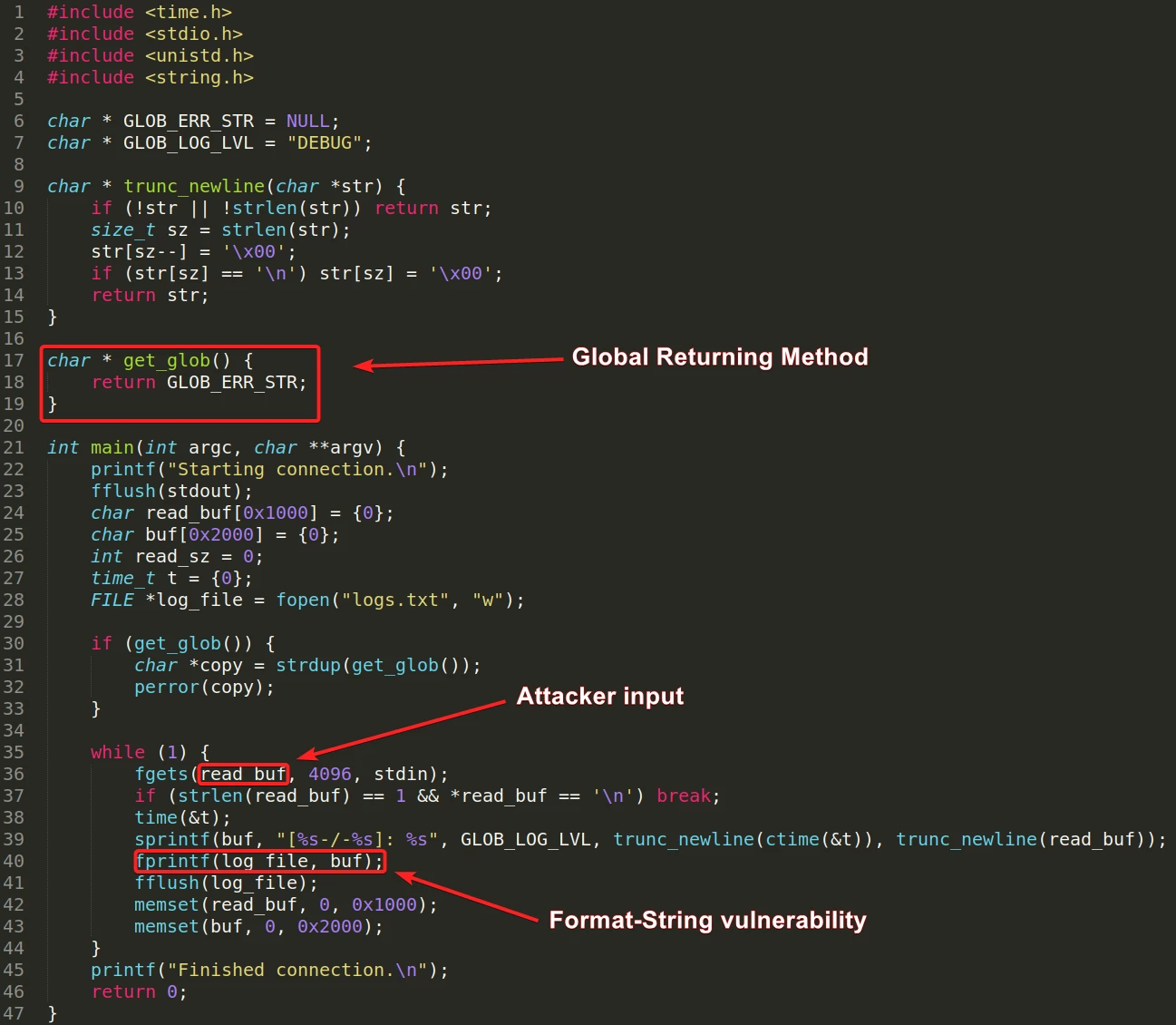 For this we need to have a little more complicated practice sample. I developed a program that suits our pre-conditions to showcase this research novel exploitation technique.